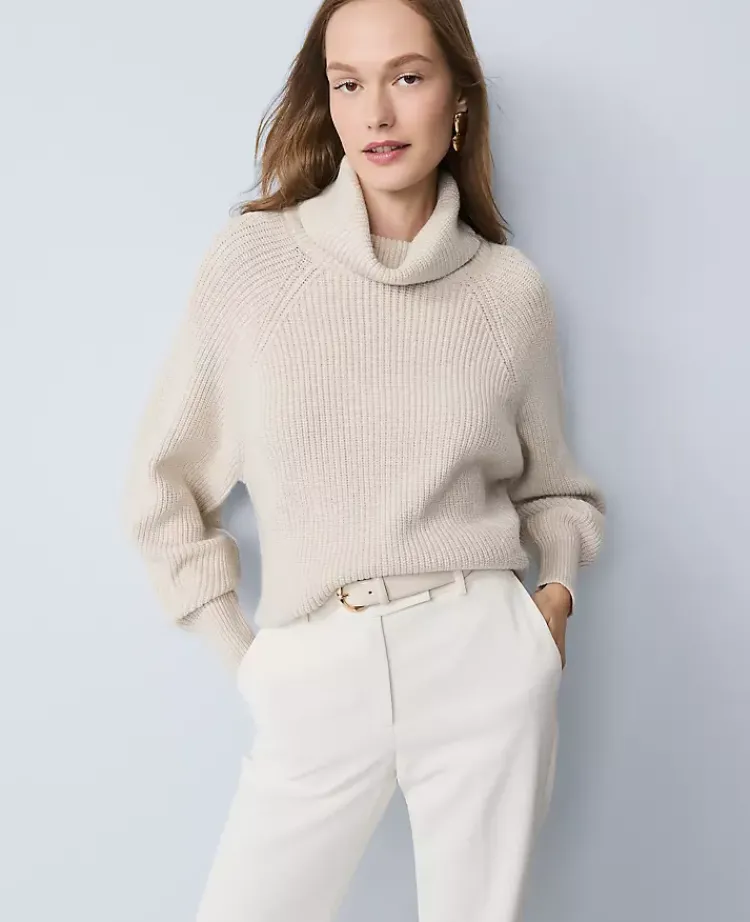 Ann Taylor Sweaters|All Sweaters|Ribbed Turtleneck Sweater Pale Sand Heather