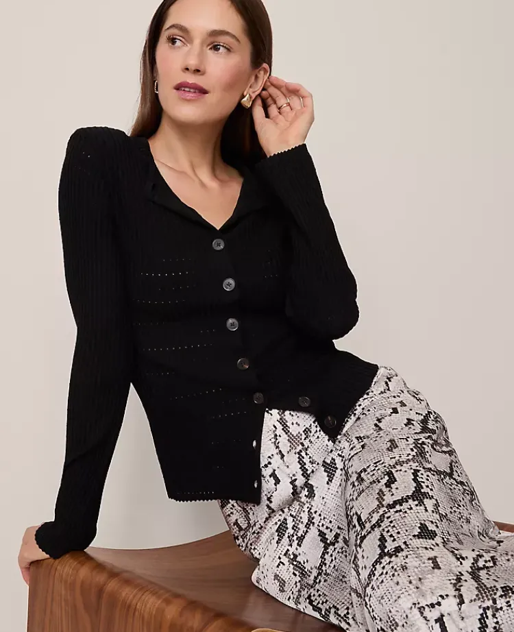 Ann Taylor Sweaters|All Sweaters|Ribbed V-Neck Cardigan Black