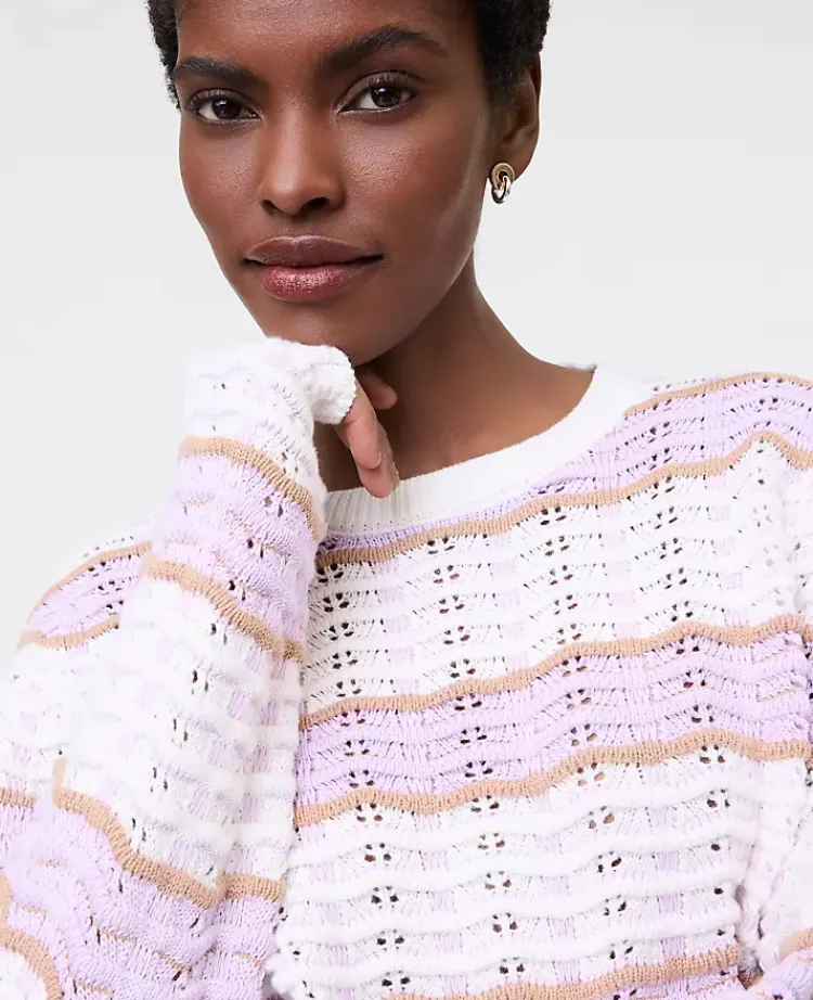Ann Taylor Sweaters|All Sweaters|Textured Stitch Striped Sweater White Multi