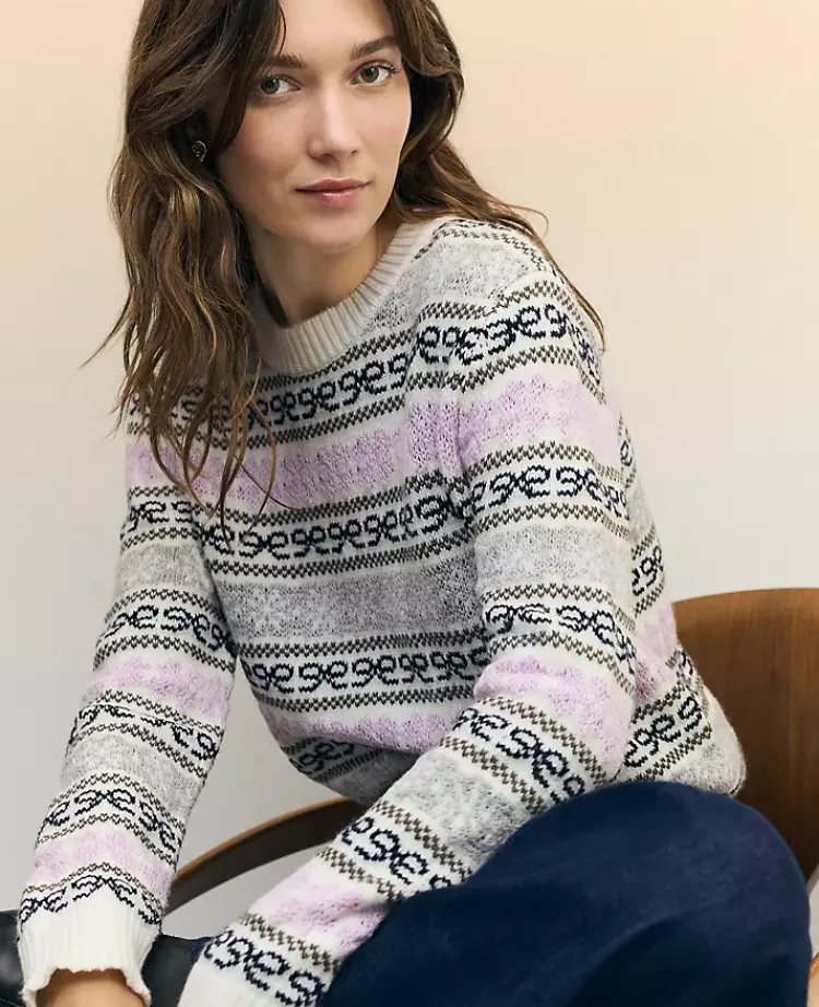 Discover Ann Taylor Weekend. Effortlessly polished, lived-in looks for wherever your plans take you. Done in a timeless Fair Isle pattern, this cold weather essential is both versatile and chic. Crew neck. Long sleeves. Drop shoulders. Ribbed neckline, cuffs and hem.