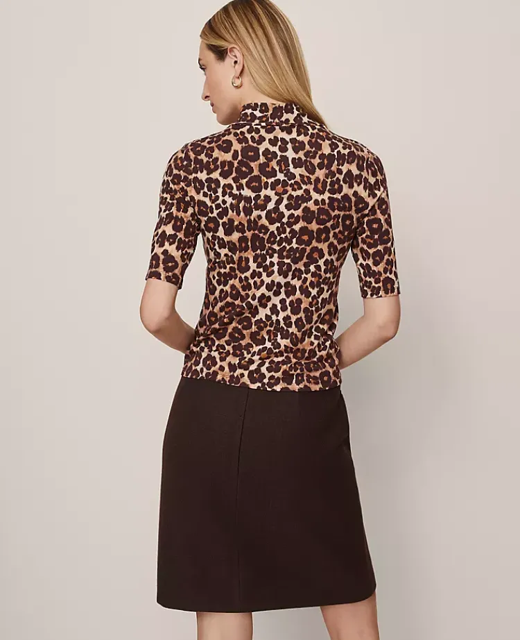 Ann Taylor Tops And Blouses|Animal Print Mock Neck Top Pale Sandalwood