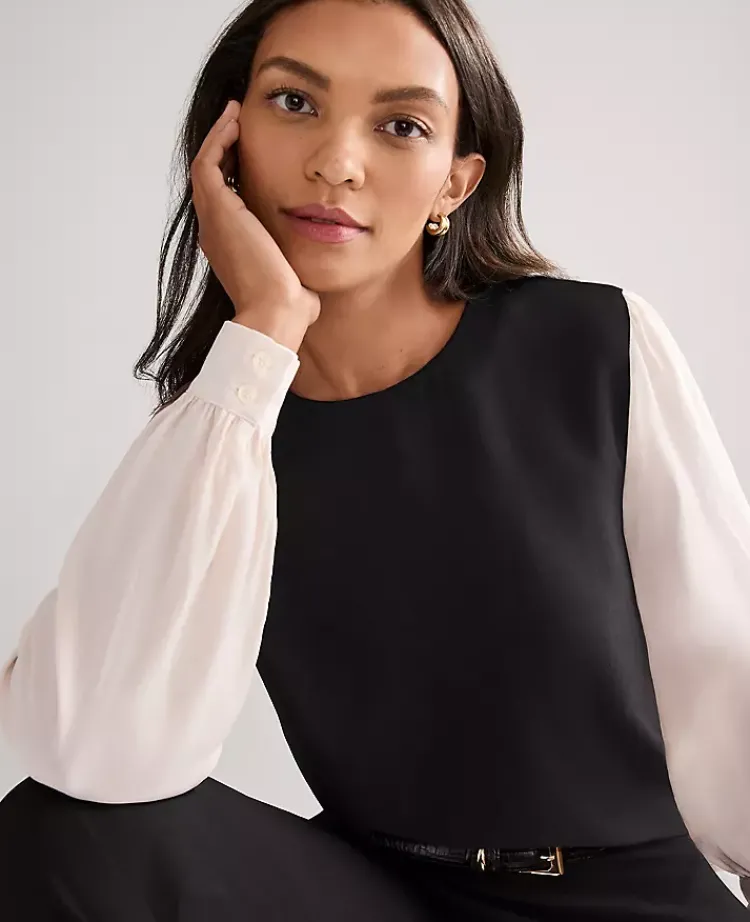 Ann Taylor Tops And Blouses|Colorblock Crew Neck Blouse Black