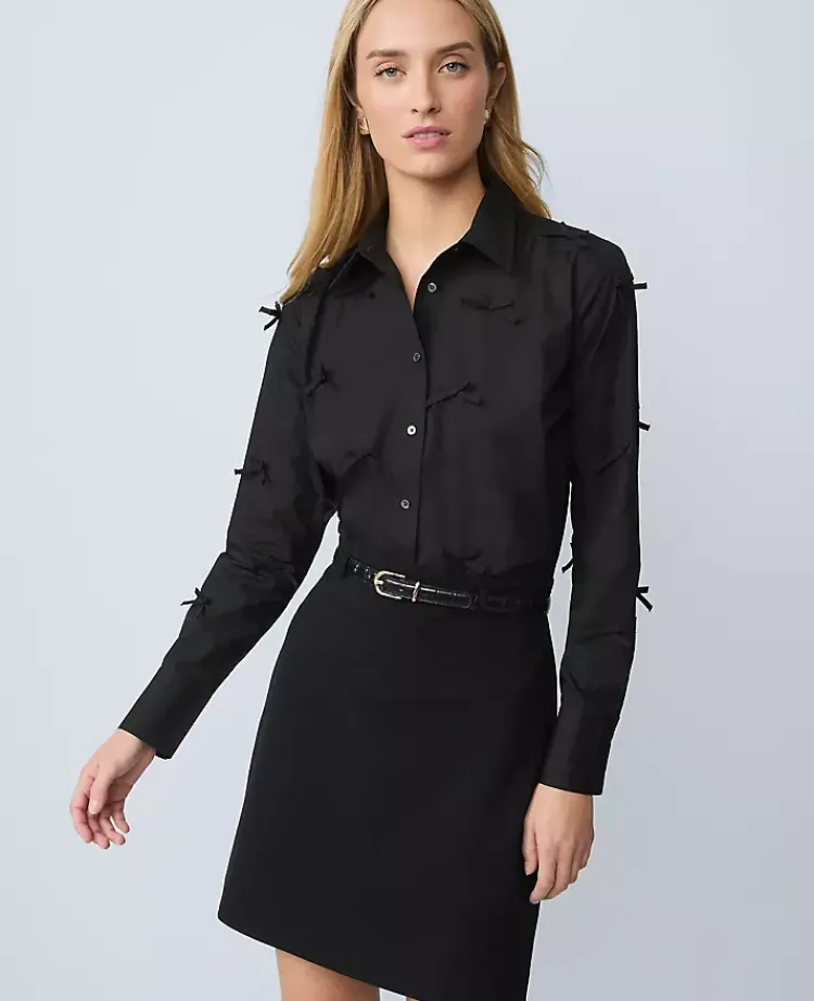 Ann Taylor Tops And Blouses|Cropped Bow Shirt Black