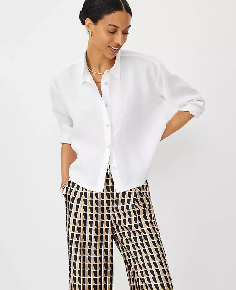 Ann Taylor Tops And Blouses|Cropped Linen Shirt White