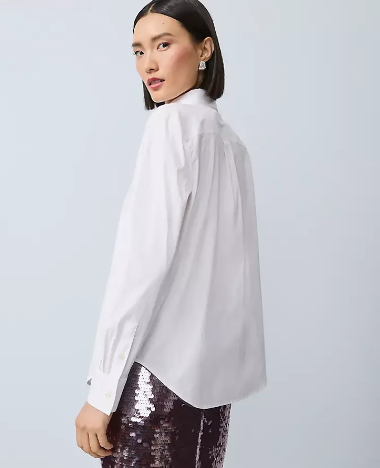 Ann Taylor Tops And Blouses|Embellished Relaxed Perfect Shirt White