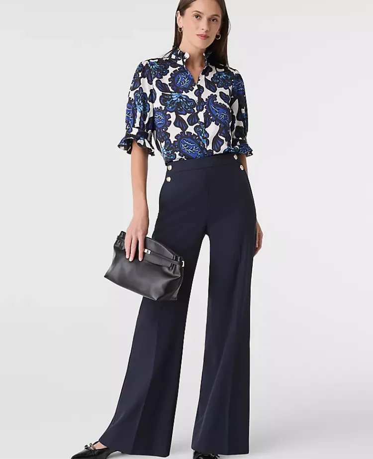 Ann Taylor Tops And Blouses|Floral Ruffle Collar Shirt Night Sky