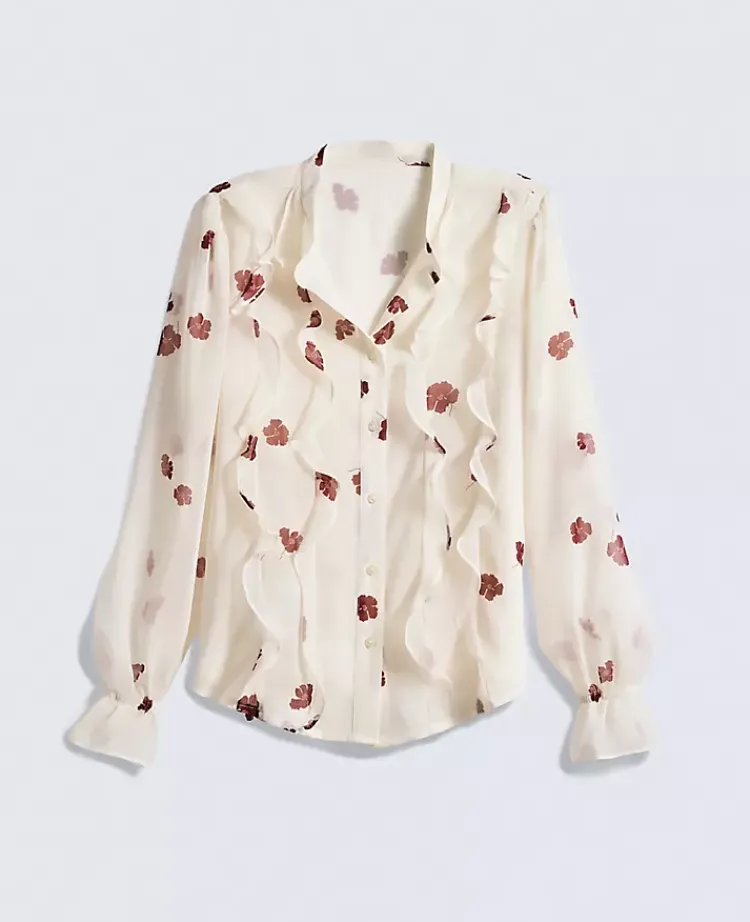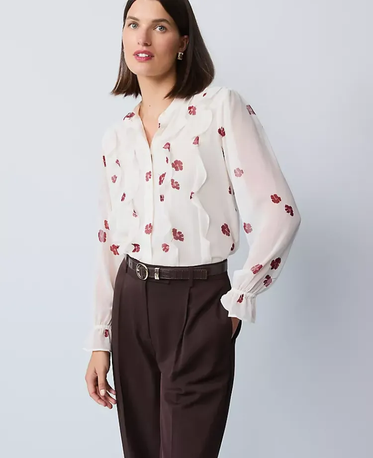 Ann Taylor Tops And Blouses|Floral Ruffle Shirt Cherry Pie