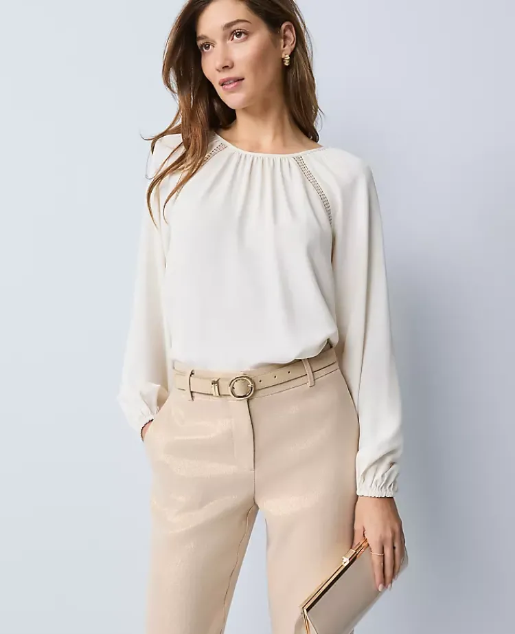 Ann Taylor Tops And Blouses|Lace Trim Mixed Media Blouse Winter White