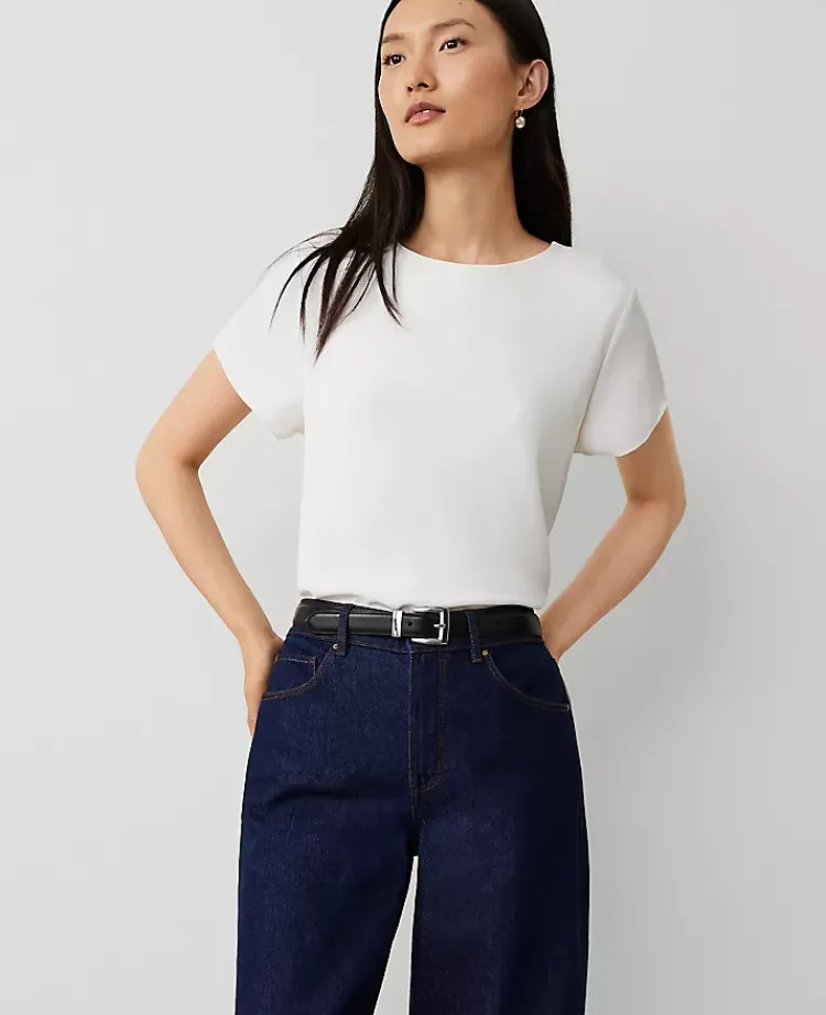 Ann Taylor Tops And Blouses|Mixed Media Crew Neck Tee Winter White
