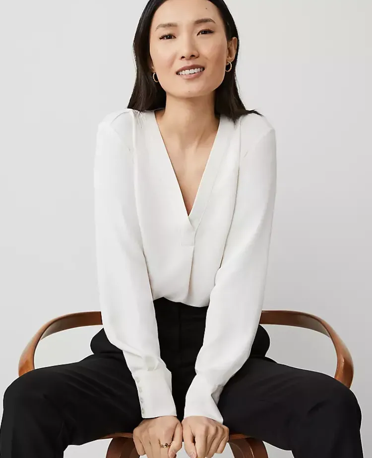 Ann Taylor Tops And Blouses|Mixed Media Pleat Front Top Winter White