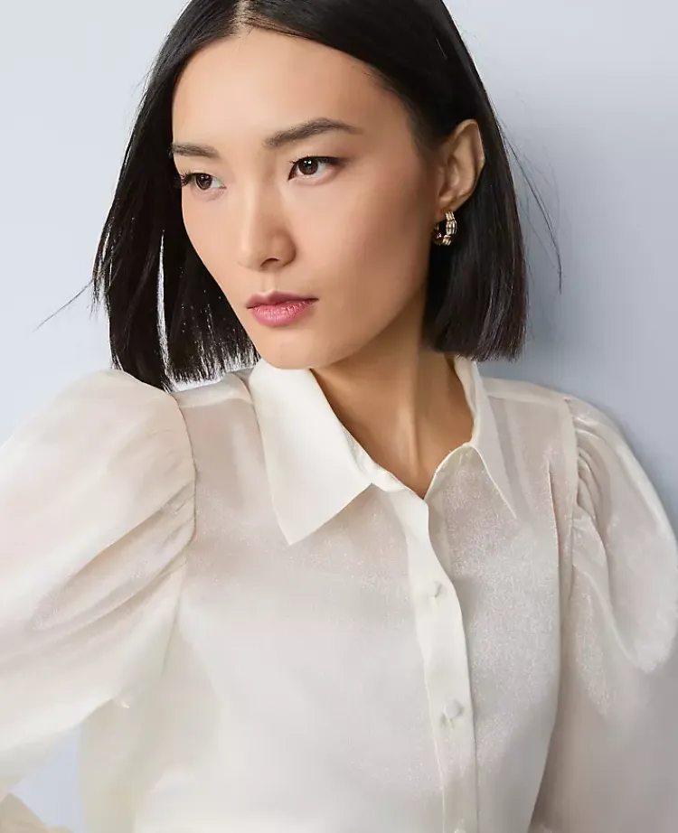 Ann Taylor Tops And Blouses|Organza Voluminous Collared Shirt Winter White