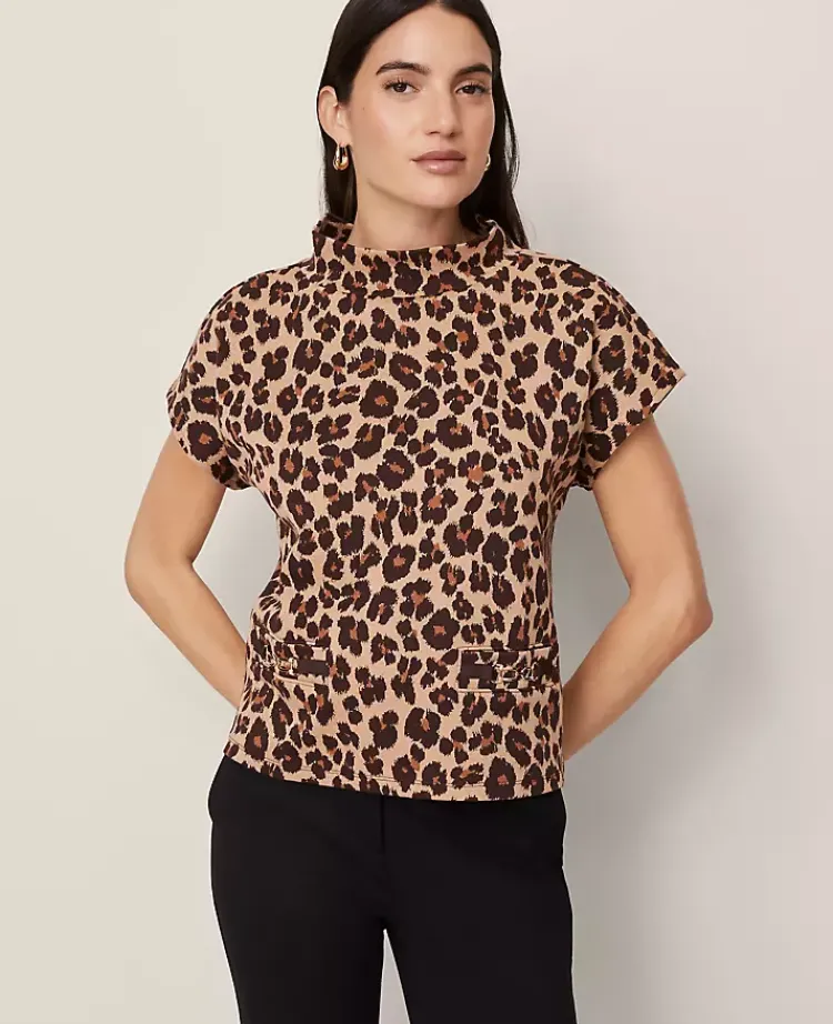 Ann Taylor Tops And Blouses|Petite Animal Print Horsebit Mock Neck Top Almond Croissant