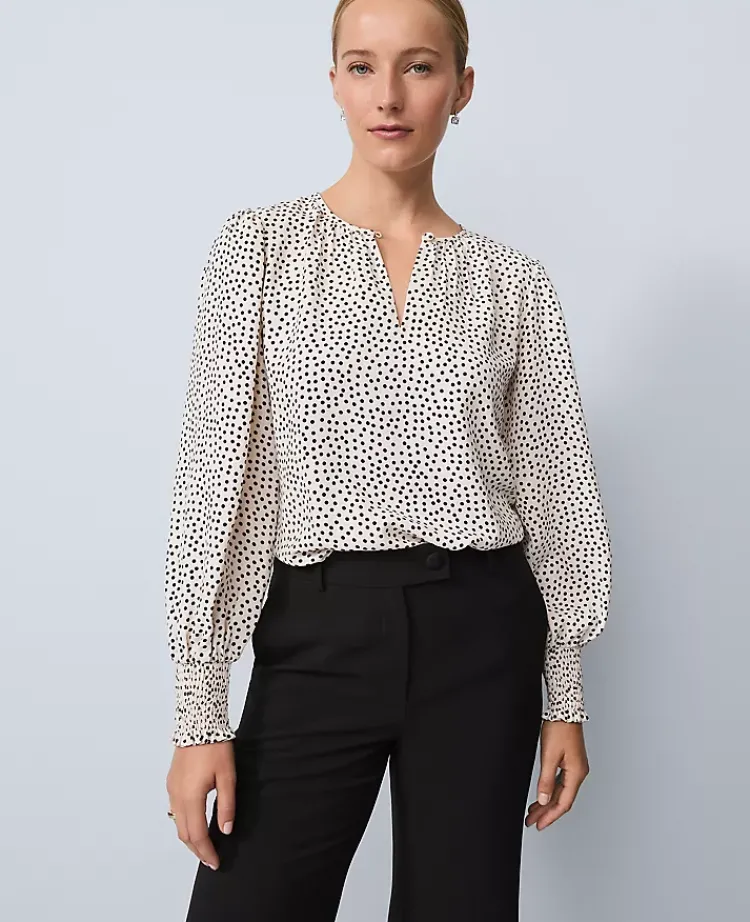 Ann Taylor Tops And Blouses|Petite Dotted Smocked Crew Neck Top Ivory Whisper