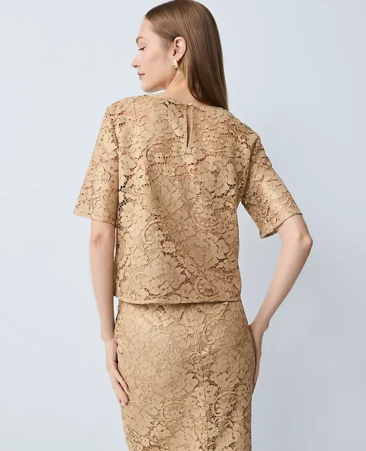 Ann Taylor Tops And Blouses|Petite Lace Blouse Gold Lace