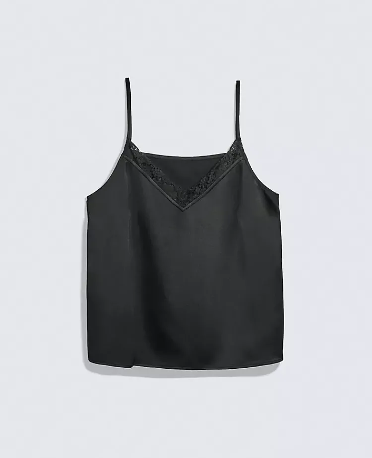Ann Taylor Tops And Blouses|Petite Lace Trim V-Neck Tank Top Black