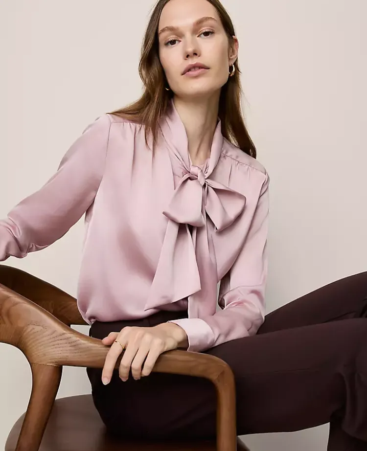Ann Taylor Tops And Blouses|Petite Satin Bow Blouse Pale Mauve