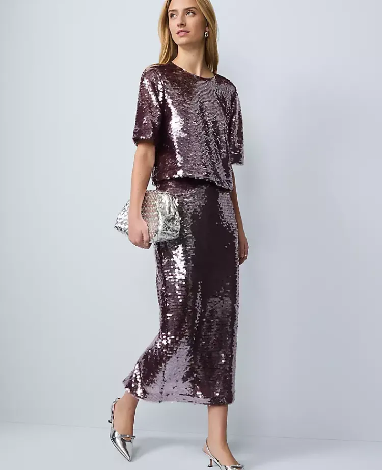 Ann Taylor Tops And Blouses|Petite Sequin Crew Neck Blouse Frosted Burgundy