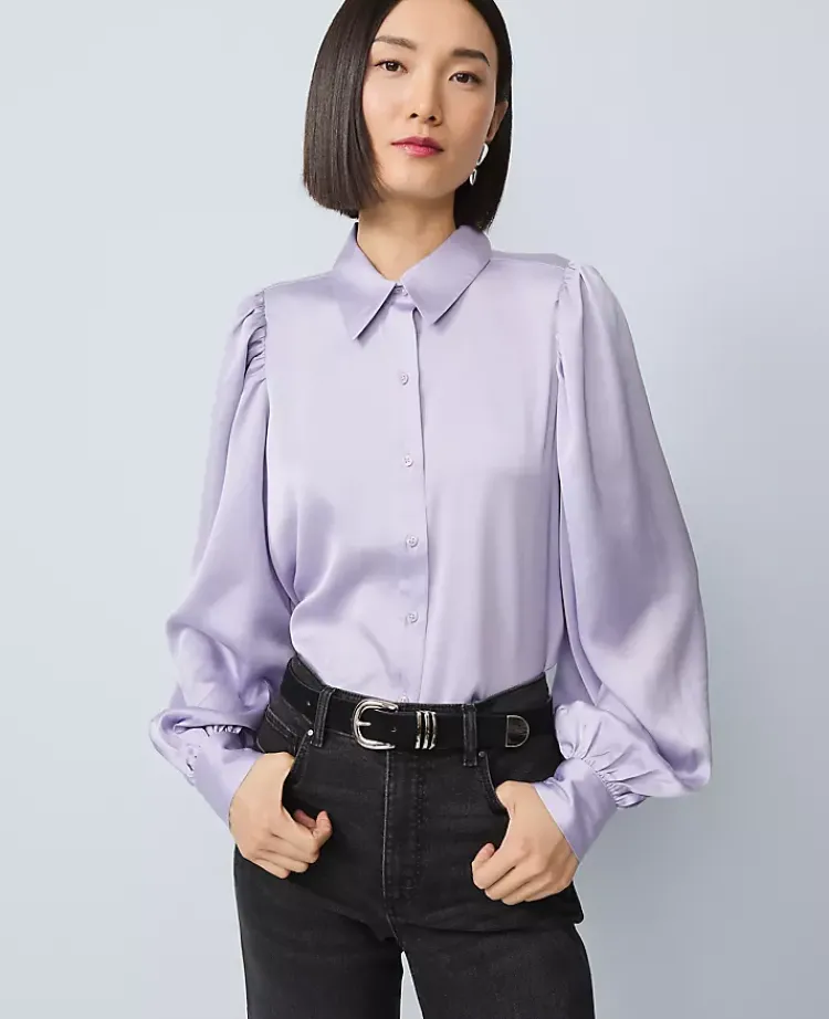 Ann Taylor Tops And Blouses|Satin Blouson Sleeve Blouse Lavender Bouquet