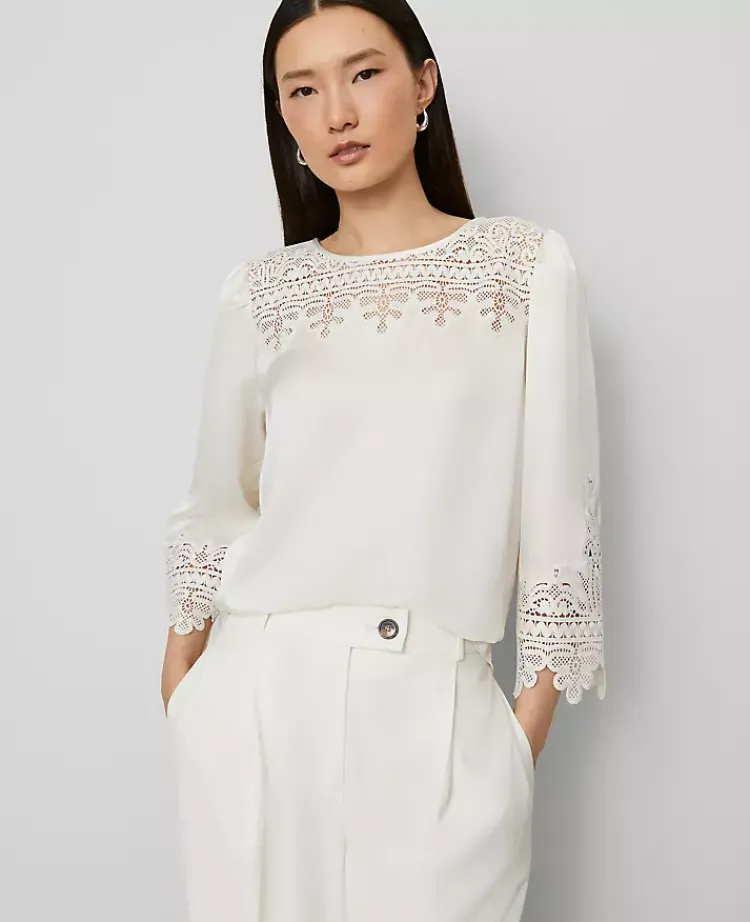 Ann Taylor Tops And Blouses|Satin Lace Trim Top Winter White