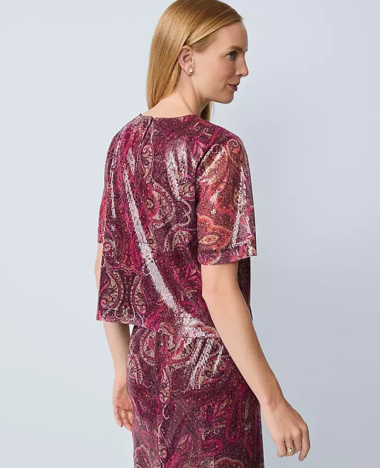 Ann Taylor Tops And Blouses|Sequin Paisley Top Poised Plum