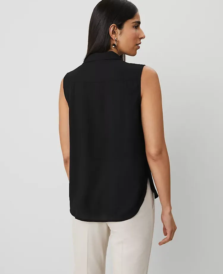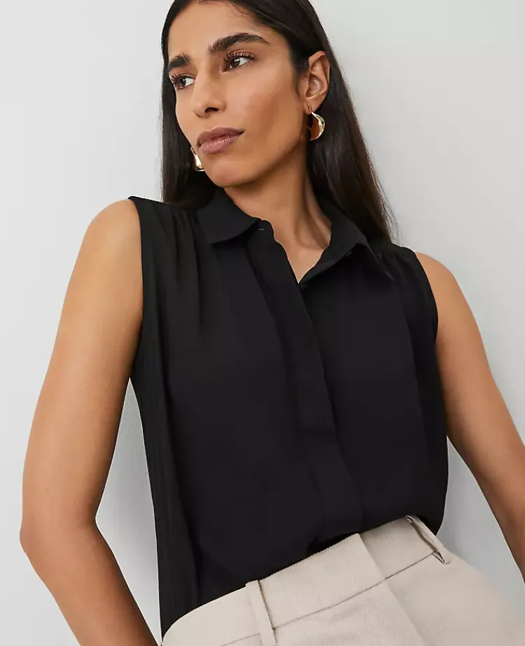 Ann Taylor Tops And Blouses|Shirred Yoke Sleeveless Shirt Black