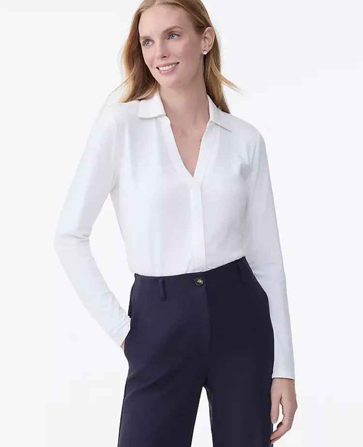 Ann Taylor Tops And Blouses|Split Neck Button Down Shirt Winter White