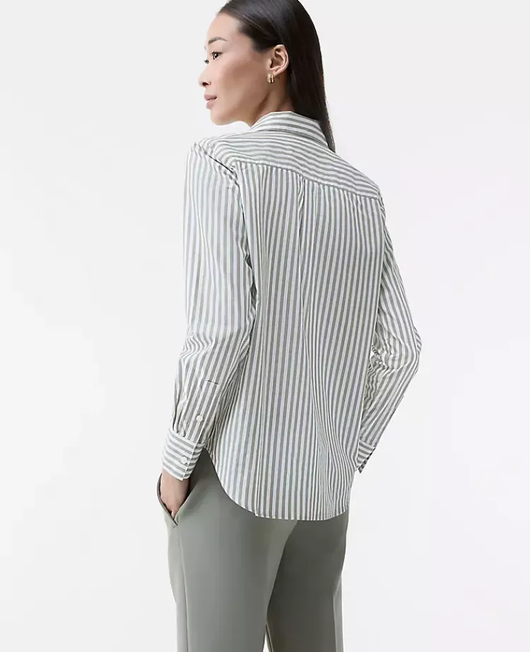 Ann Taylor Tops And Blouses|Striped Relaxed Perfect Shirt Dried Moss