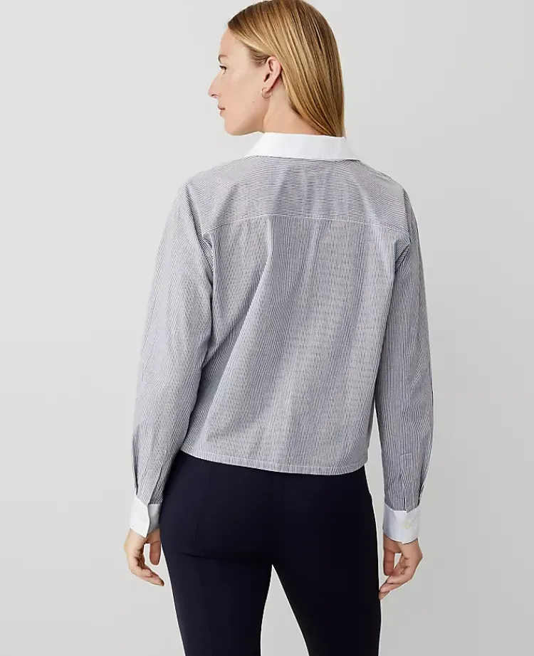 Ann Taylor Tops And Blouses|Weekend Collection Striped Cotton Blend Shirt Pure Blue Sky