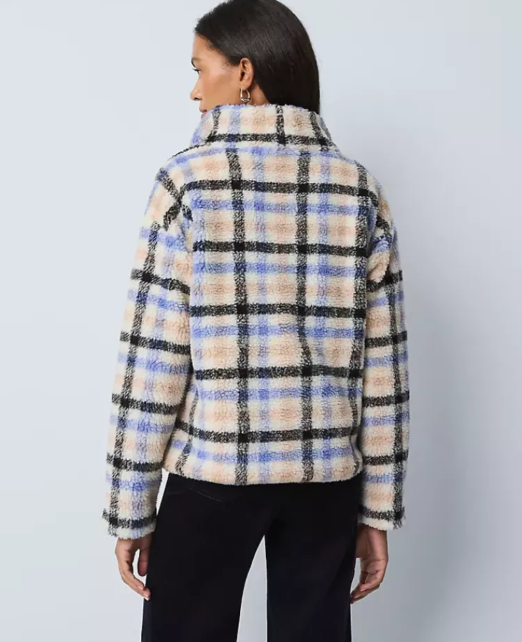 Ann Taylor Tops And Blouses|Weekend Tops|Weekend Collection Plaid Sherpa Pullover Peaceful Periwinkle