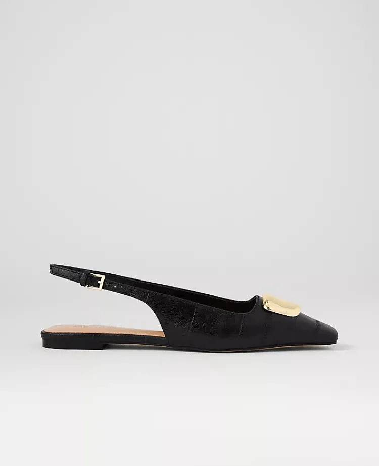 Ann Taylor Weekend Shoes|Weekend Shoes|Leather Buckle Slingback Flat Black